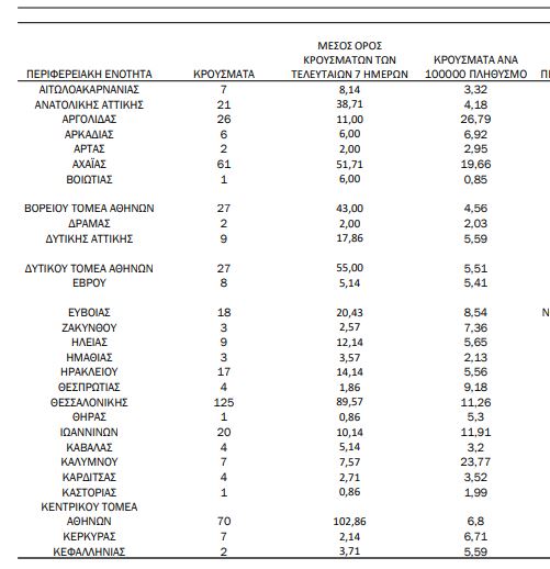 Κεντρικός Τομέα Αθηνών: 70 κρούσματα